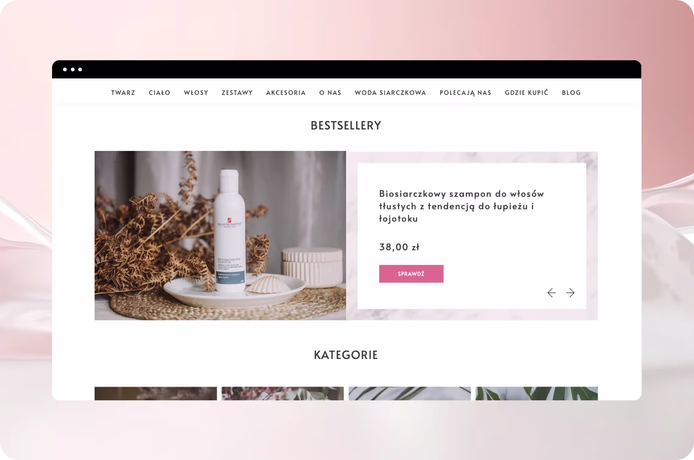 Oaza naturalnej pielęgnacji z kosmetykami do skóry i włosów na bazie roślinnych składników, które podkreślają urodę.