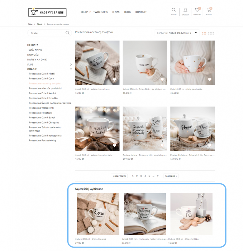 Dodatkowe produkty można też polecać kupującym pod angażującymi hasłami: “Inni kupili także” albo “Najczęściej wybierane”.