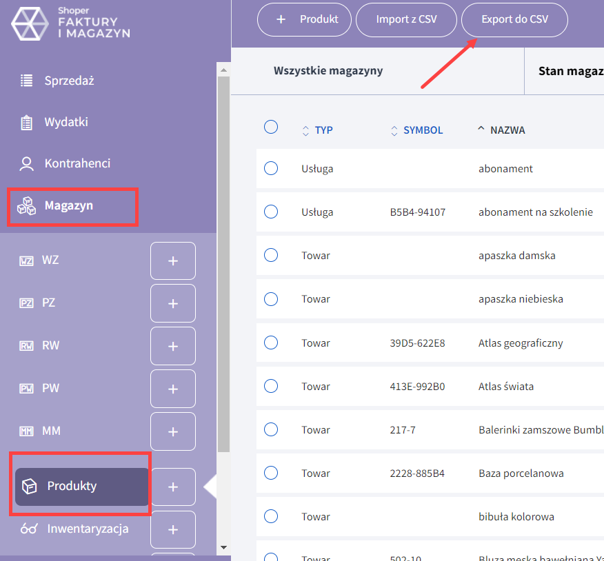- Jak wykonać eksport produktów z programu Shoper Faktury i Magazyn do CSV?