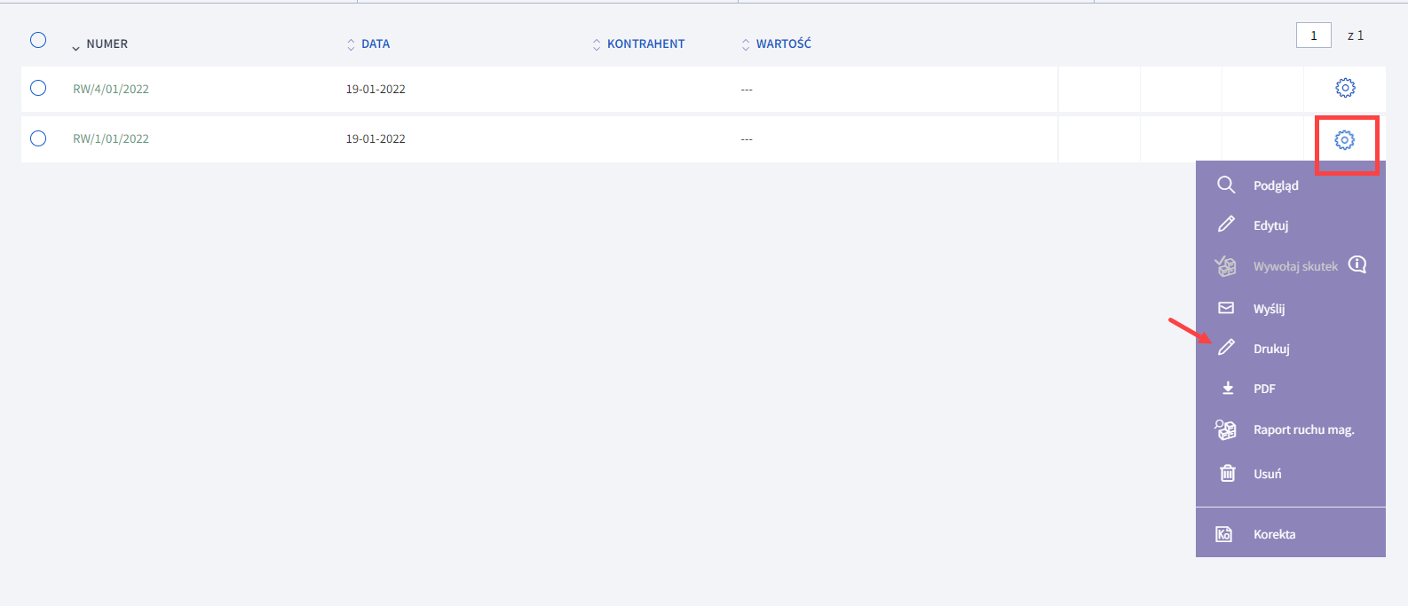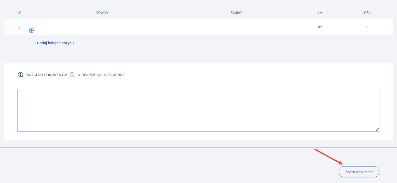 Dodawanie nowego dokumentu rozchód wewnętrzny (RW)