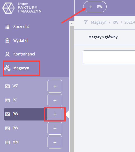 Kliknij przycisk: + RW lub kliknij ikonę: + przy nazwie: RW (znajduje się w menu po lewej stronie ekranu).