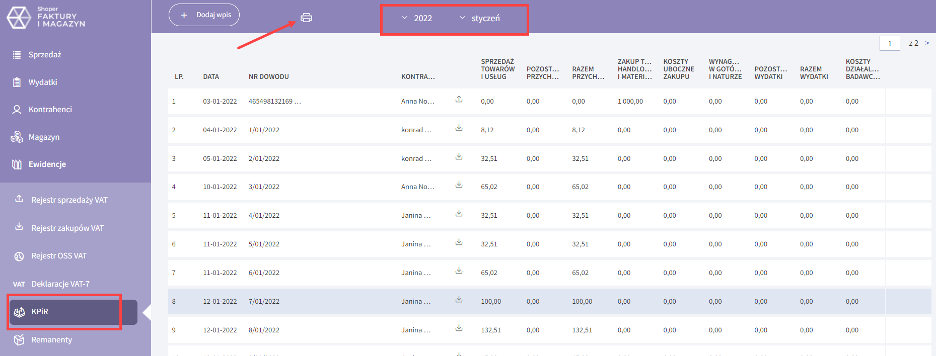 Generowanie dokumentu KPiR na koncie Shoper Faktury i Magazyn