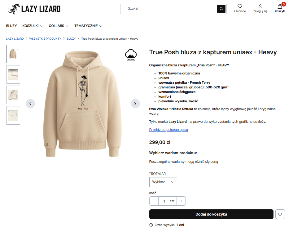 Dla Lazy Lizard sklep to nie tylko sprzedaż. To miejsce, które ma przyciągać, inspirować i budować relację. Dlatego zadbali o każdy szczegół: od UX po opisy produktów. Chcieli, żeby klient czuł się jak w dobrej galerii handlowej – wszystko ładne, uporządkowane, pachnące nowością. Żeby to było przyjemne doświadczenie i pozytywny styk z marką, nawet jeśli klient nic nie kupi.