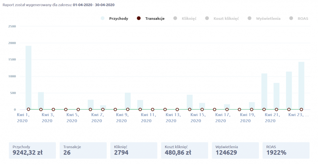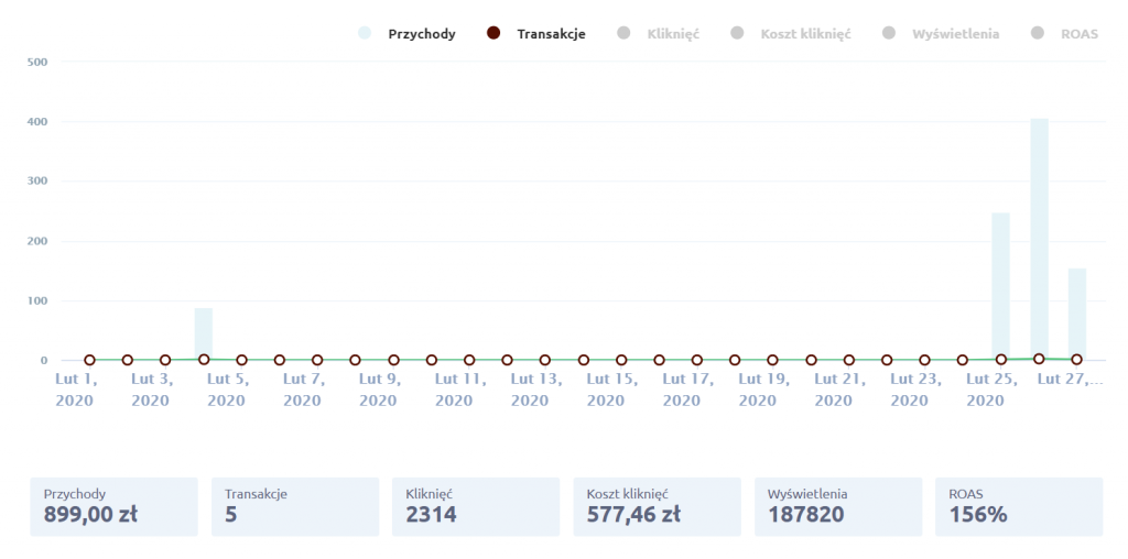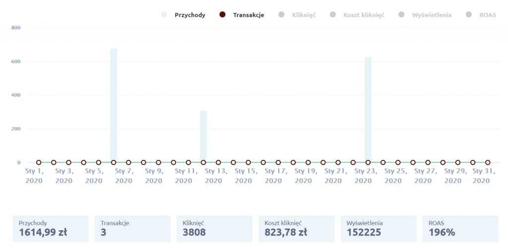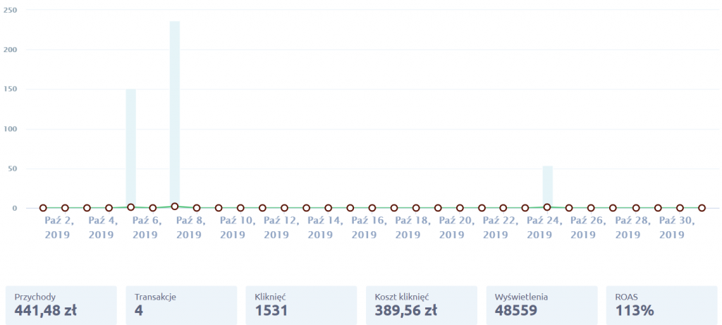 Początkowo nic się nie działo, jednak końcem miesiąca nastąpił przełom i mimo, że zwrot z inwestycji był nadal niski, pojawiły się konwersje.