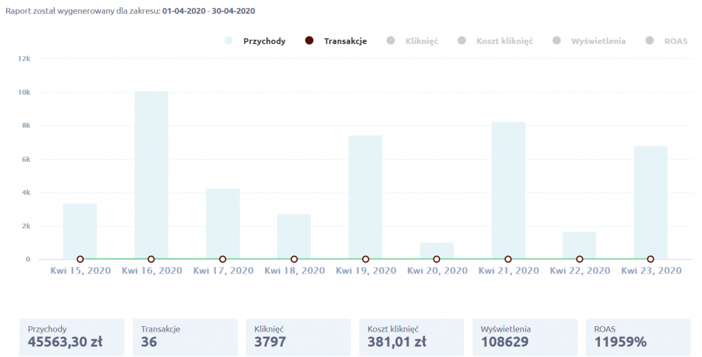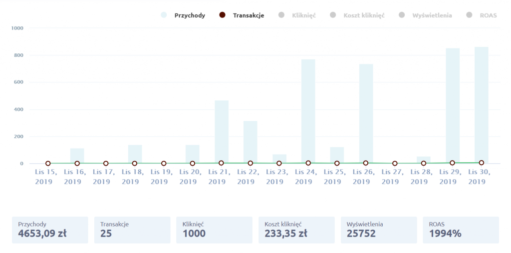 Tym razem omówimy wyniki sklepu, który był odpowiednio przygotowany do kampanii, pozyskiwał wcześniej ruch z innych źródeł (SEO, Google Ads).