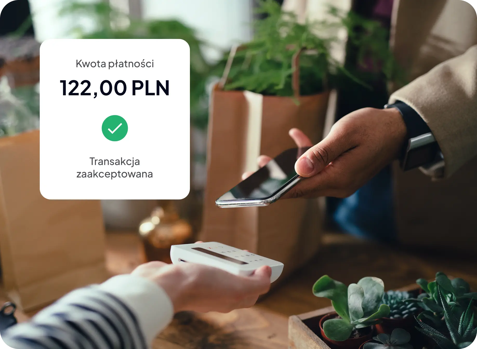 - Po akceptacji płatności terminal wyświetla jej status i drukuje potwierdzenie dla ciebie i klienta.